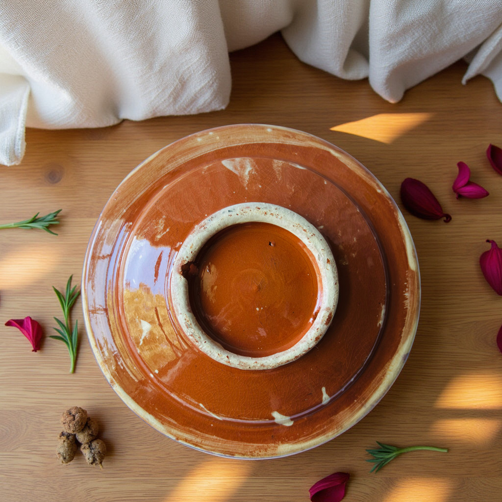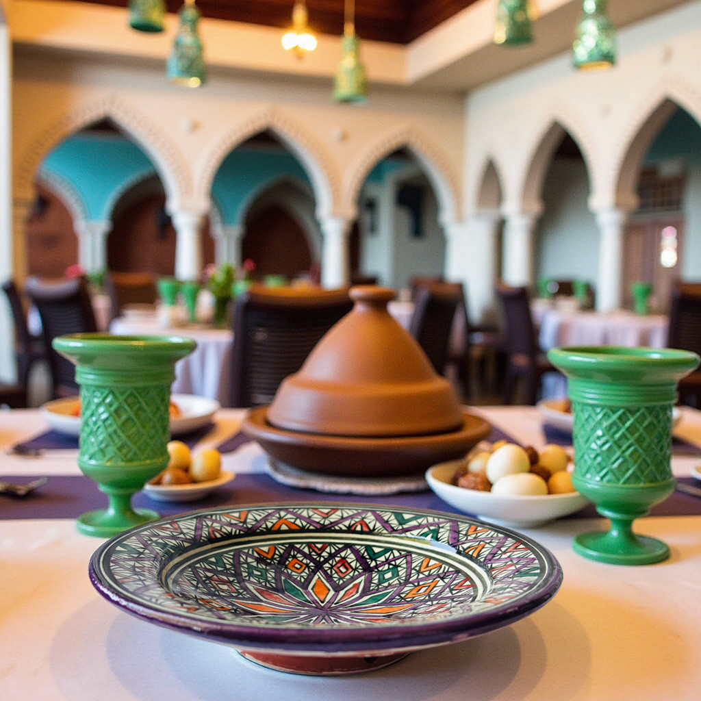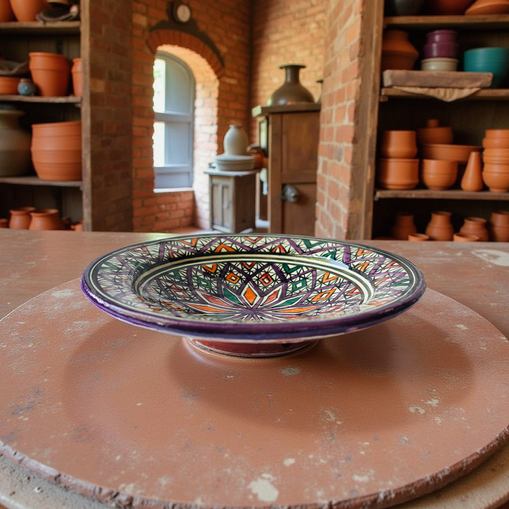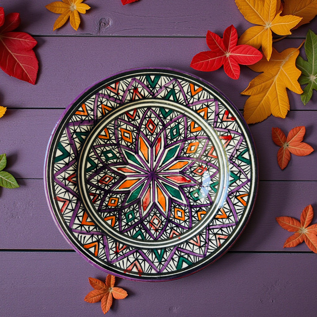 Perfectly sized for serving tagines, couscous, or assorted appetizers, yet equally captivating as a wall-mounted accent. This plate blends tradition and modernity for homes with rustic, boho, or Mediterranean character. -