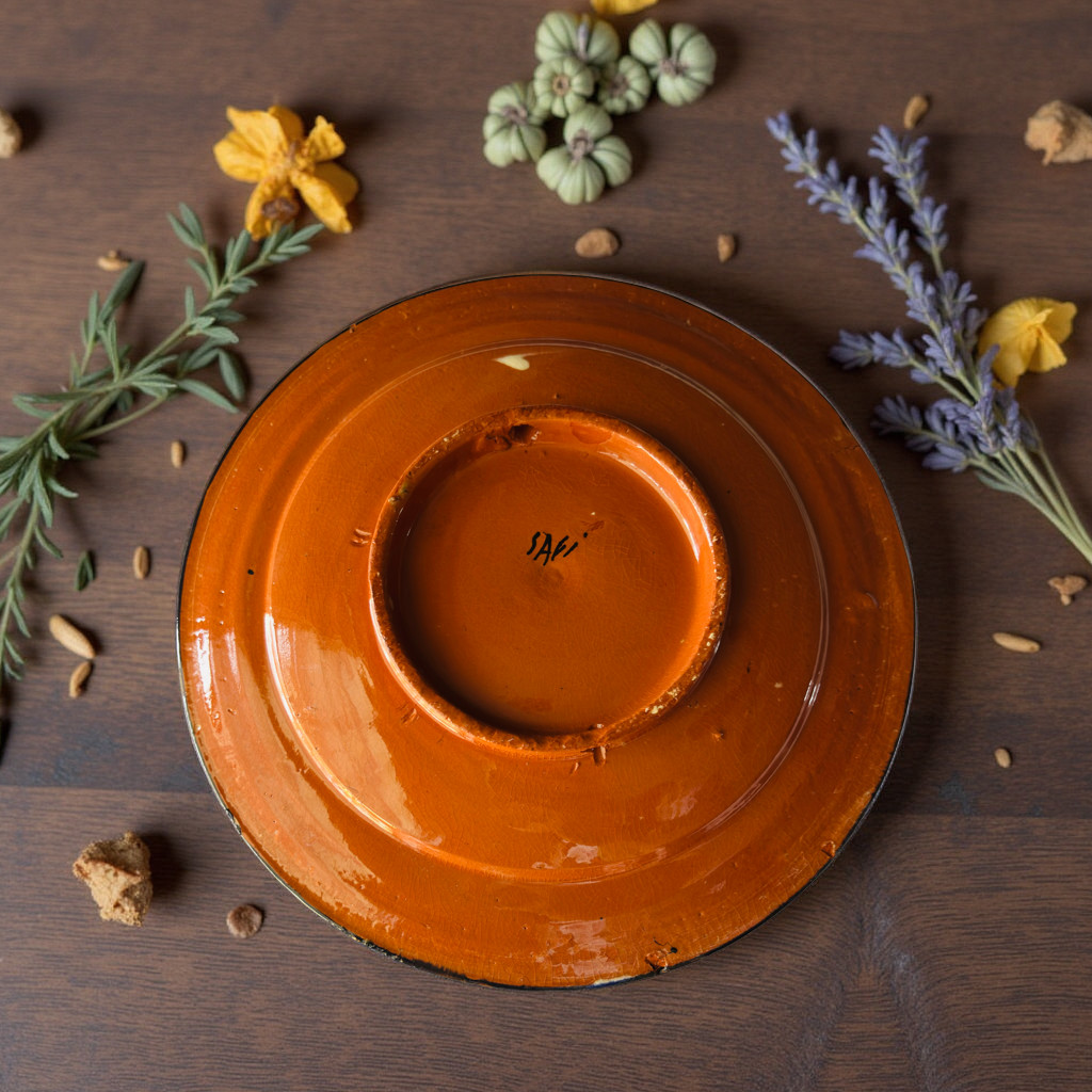 This authentic plate is hand-thrown, hand-painted, and hand-glazed in Safi — Morocco’s oldest pottery city, where generations of artisans continue to produce timeless ceramic art. The back of the plate is unglazed, exposing the warm terracotta clay stamped with “SAFI” — a mark of origin and authenticity. -